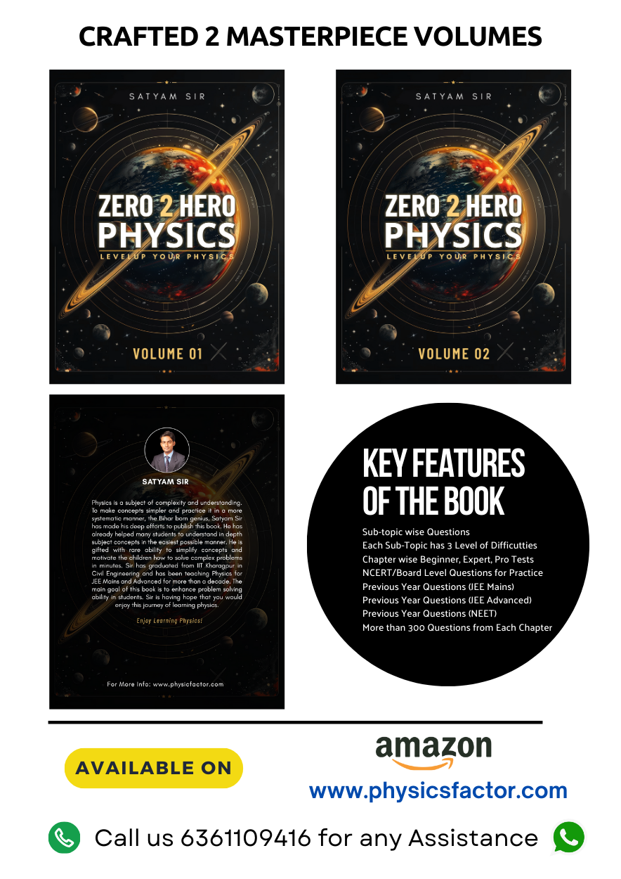 Our Most Awaited Books are Released Go over the links below to visit all our Physics Books These Books are well designed for IIT JEE Mains & Advanced, State Engineering Entrance & Medical Entrance Exams, NEET UG, CBSE, ICSE, IGCSE, Foundation, NTSE, Olympiads, High School, College, A Level Physics, O Level Physics, AP Physics, EmSAT, F=ma, CET, KCET, BITSAT, Class 9, Class 10, Class 11, Class 12, Dropper, 1st PU, 2nd PU, 1st year 2nd Year Physics, Assignment & Quiz Help, Physics Doubts Solving Digital eBooks Buy on Amazon Kindle (Global) Buy on Amazon Kindle (India) Buy on Google Play Store View Sample Book 01 Motion in 1D vol 04 102 pages sample Book View Sample Book 02 Heat & Thermodyanmics vol 5 sample copy green View Sample Book 03 Zero 2 Hero Physics Zero 2 Hero Physics Vol 01 Sample copy